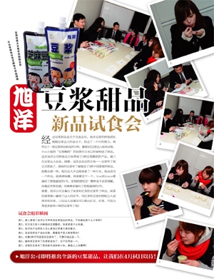 由日本拖拉克(toraku)公司(不二集團公司)和上海旭洋綠色食品有限公司共同研制的以豆?jié){為原材料的新口味甜點,最近組織了新品試吃活動。由于此次甜點的創(chuàng)意完全源自于旭洋重視的消費者們,所以我們特別重視這次試吃活動上大家的給予的意見。試吃結(jié)束后,大家對新產(chǎn)品不約而同的豎起了大拇指,稱贊新產(chǎn)品的完成度非常的高,完全可以在市場上出售了。到預計新產(chǎn)品上市的2010年初夏,還有一些時間,我們會積極聽取大家的建議和意見,力爭把更優(yōu)質(zhì)的豆?jié){布丁呈現(xiàn)給大家!!